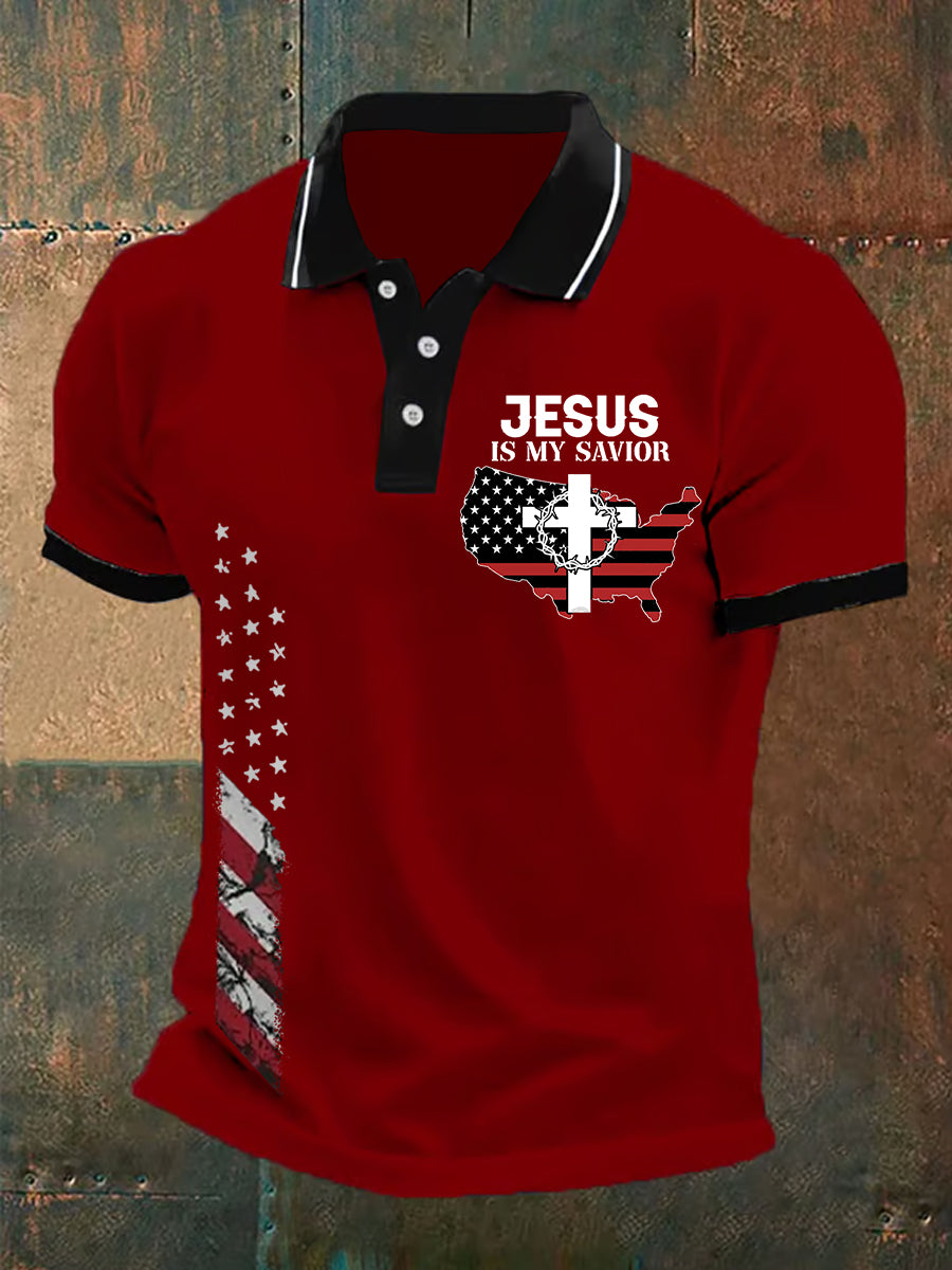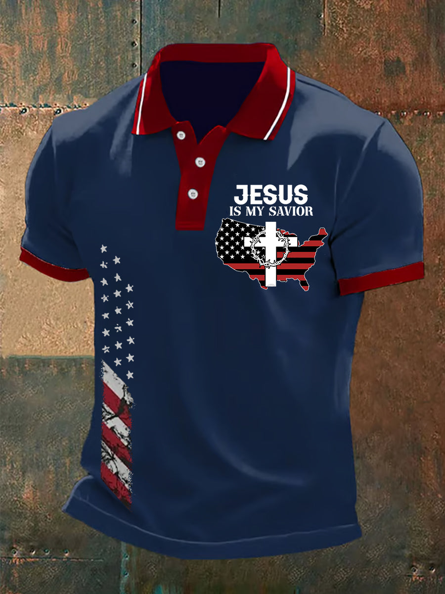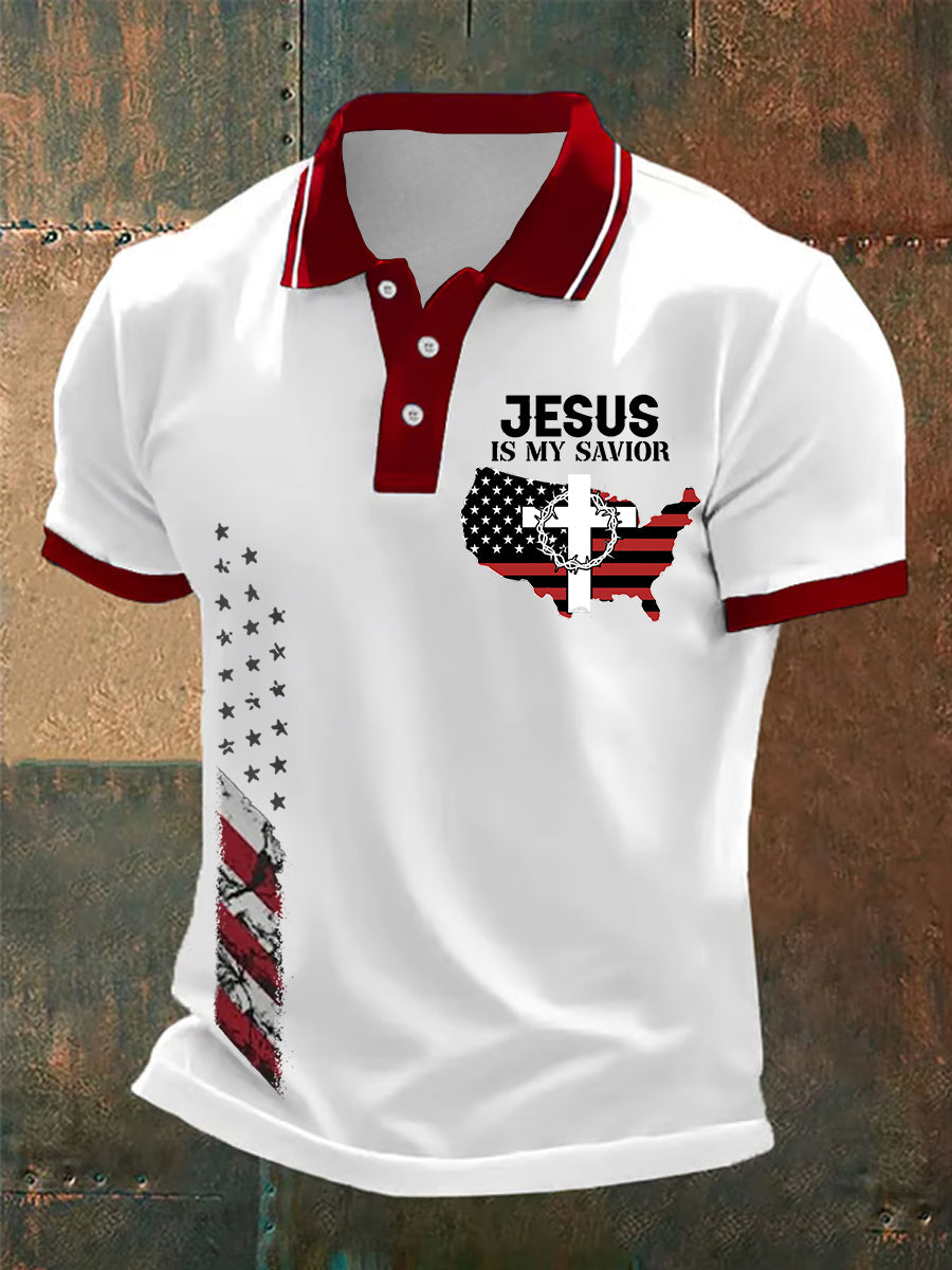 Herren Poloshirt mit amerikanischer Flagge und Kreuz, Glaube, lässig