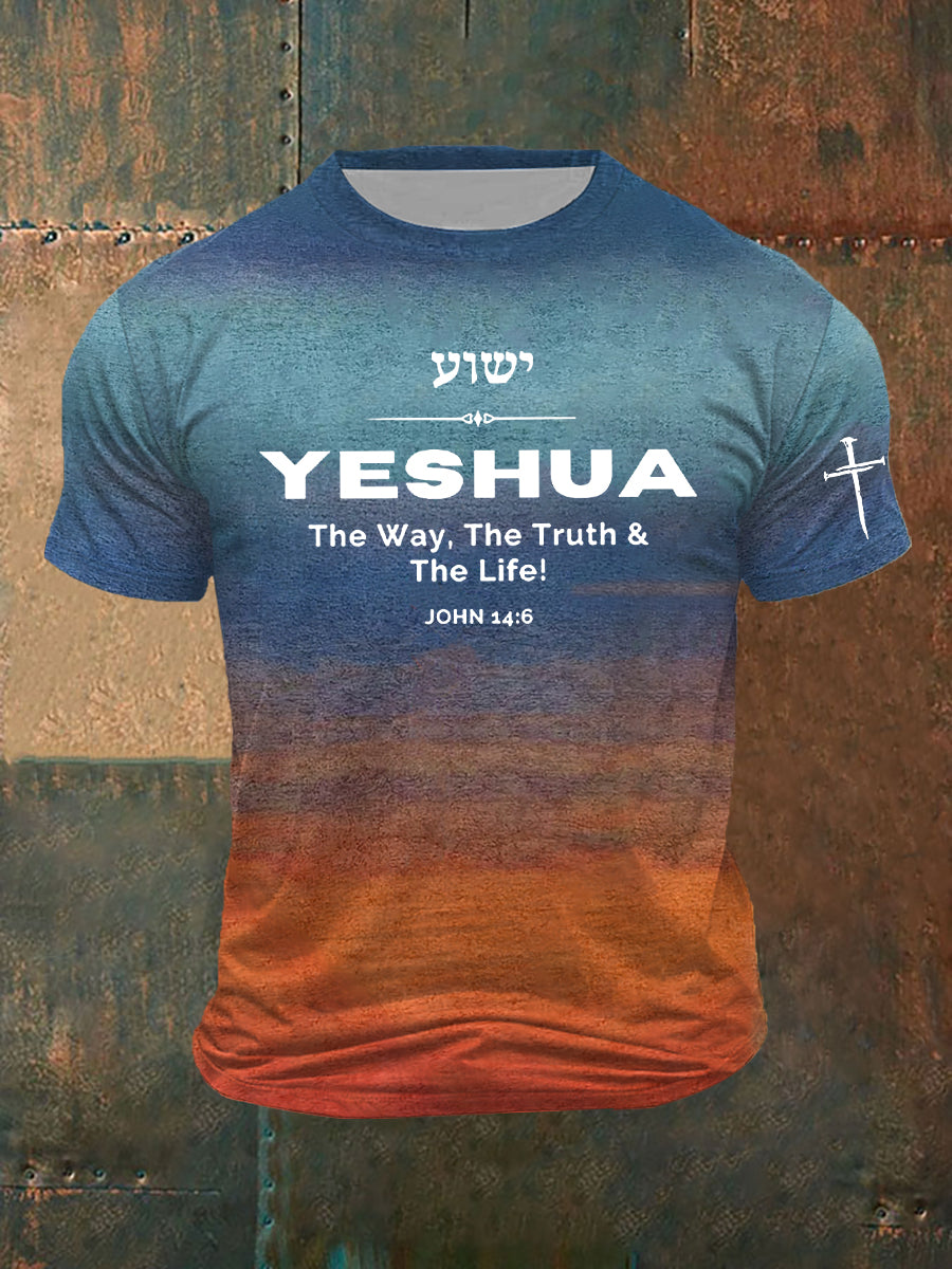Herren-T-Shirt mit Aufdruck „Yeshua Faith Cross“ und kurzen Ärmeln