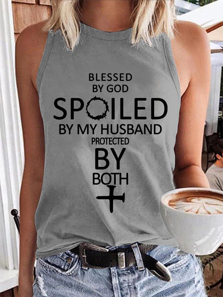 Women's Blessed By God Spoiled By My Husband Protected By Both Casual Vest