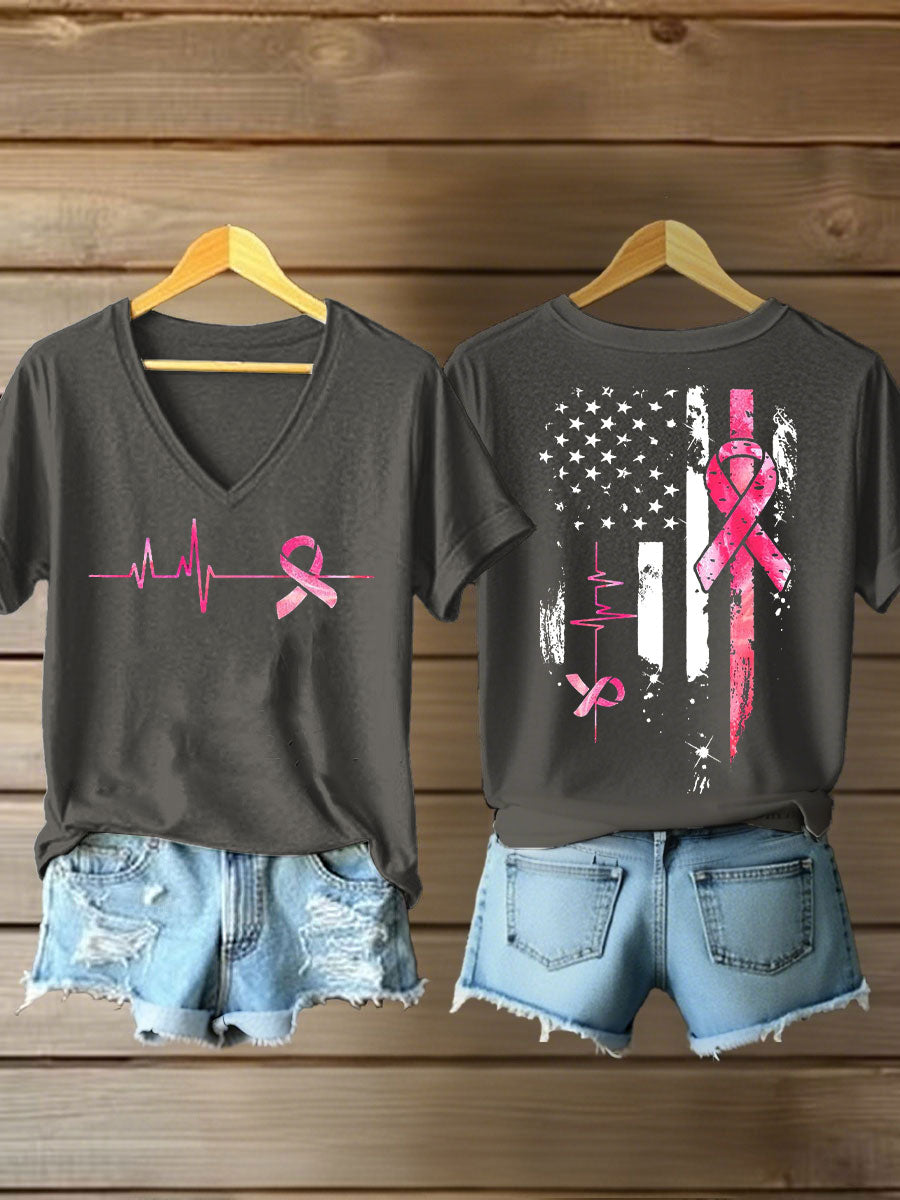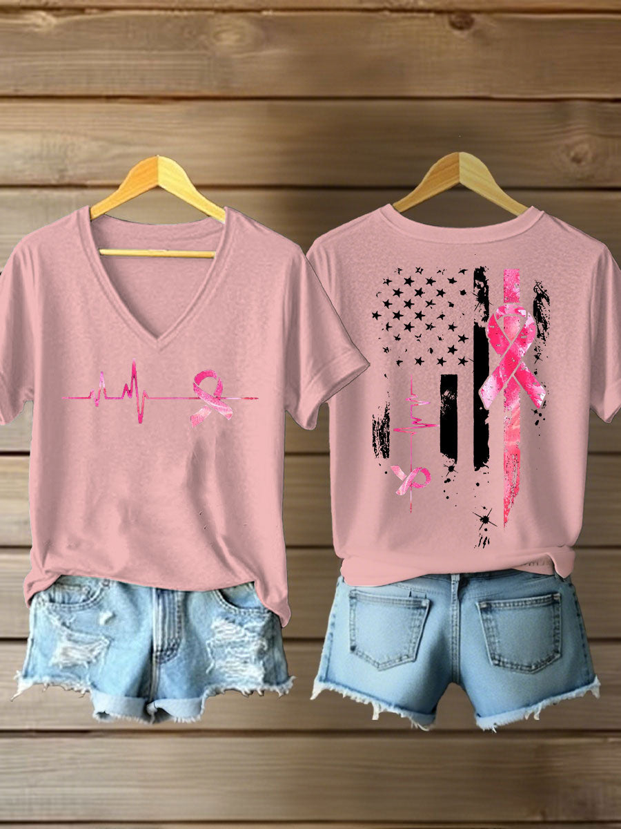 Women's Breast Cancer Awareness Pink Ribbon Print T-Shirt