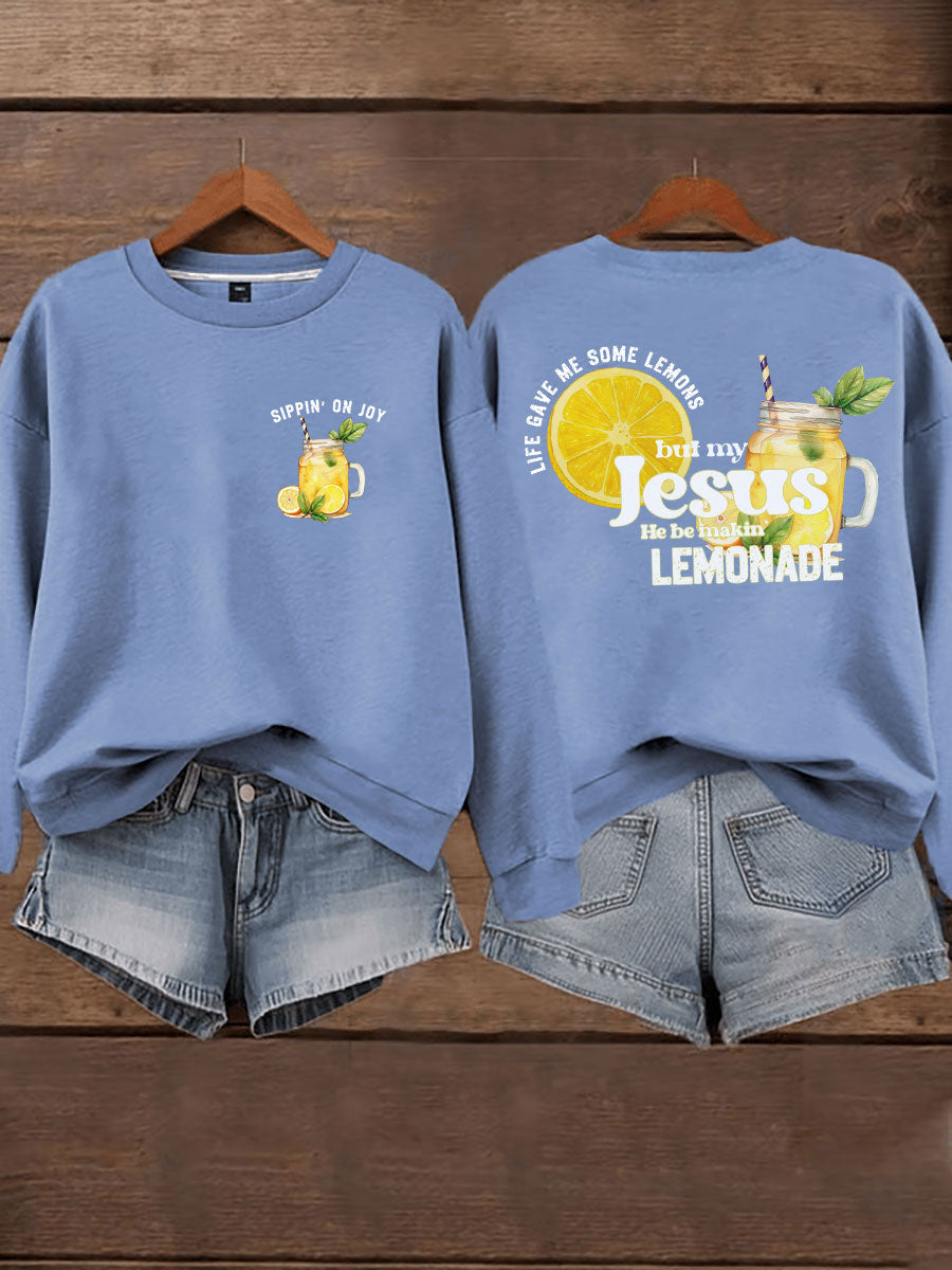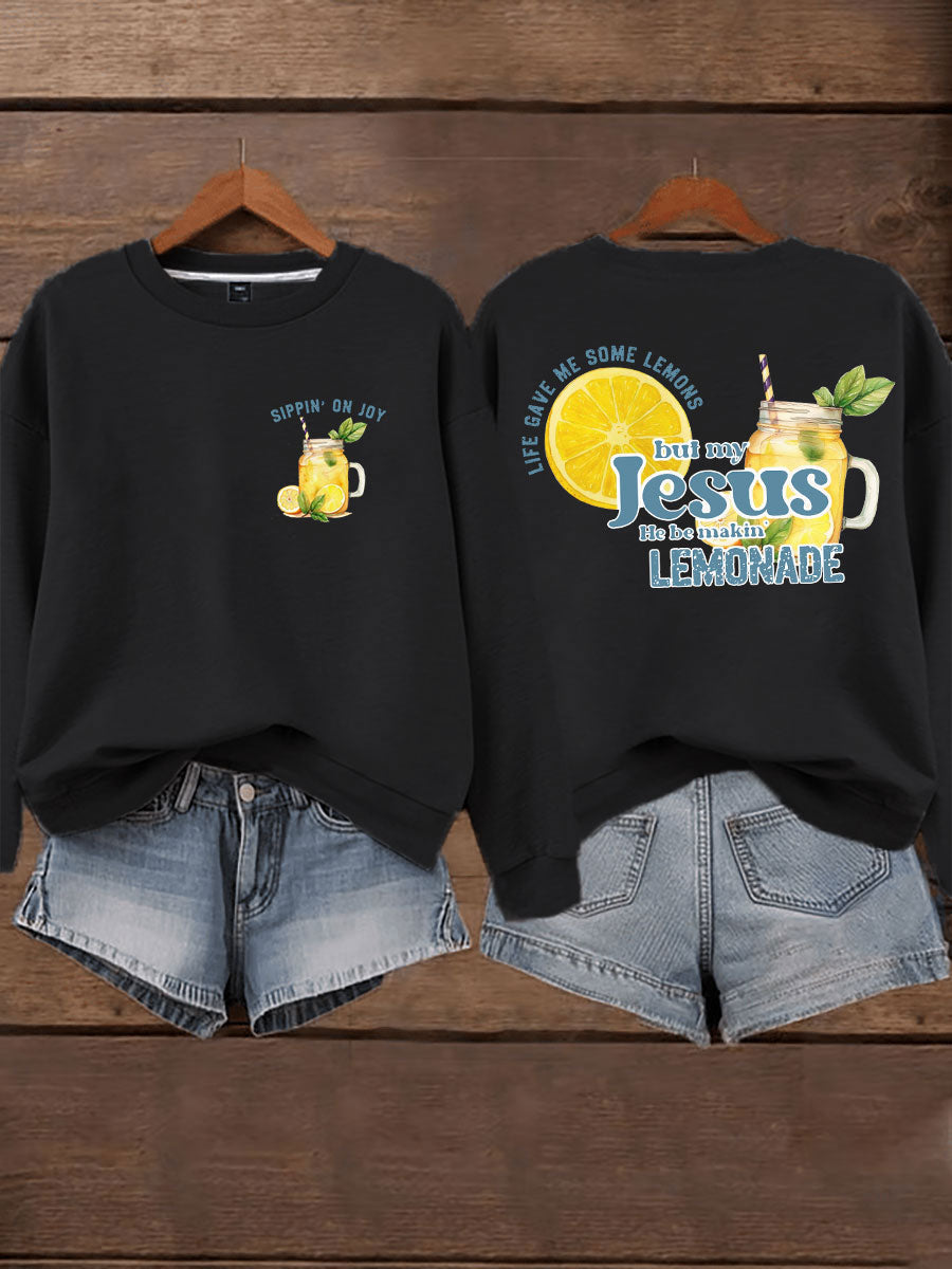 Women's Jesus Lemonade Print Casual Sweatshirt