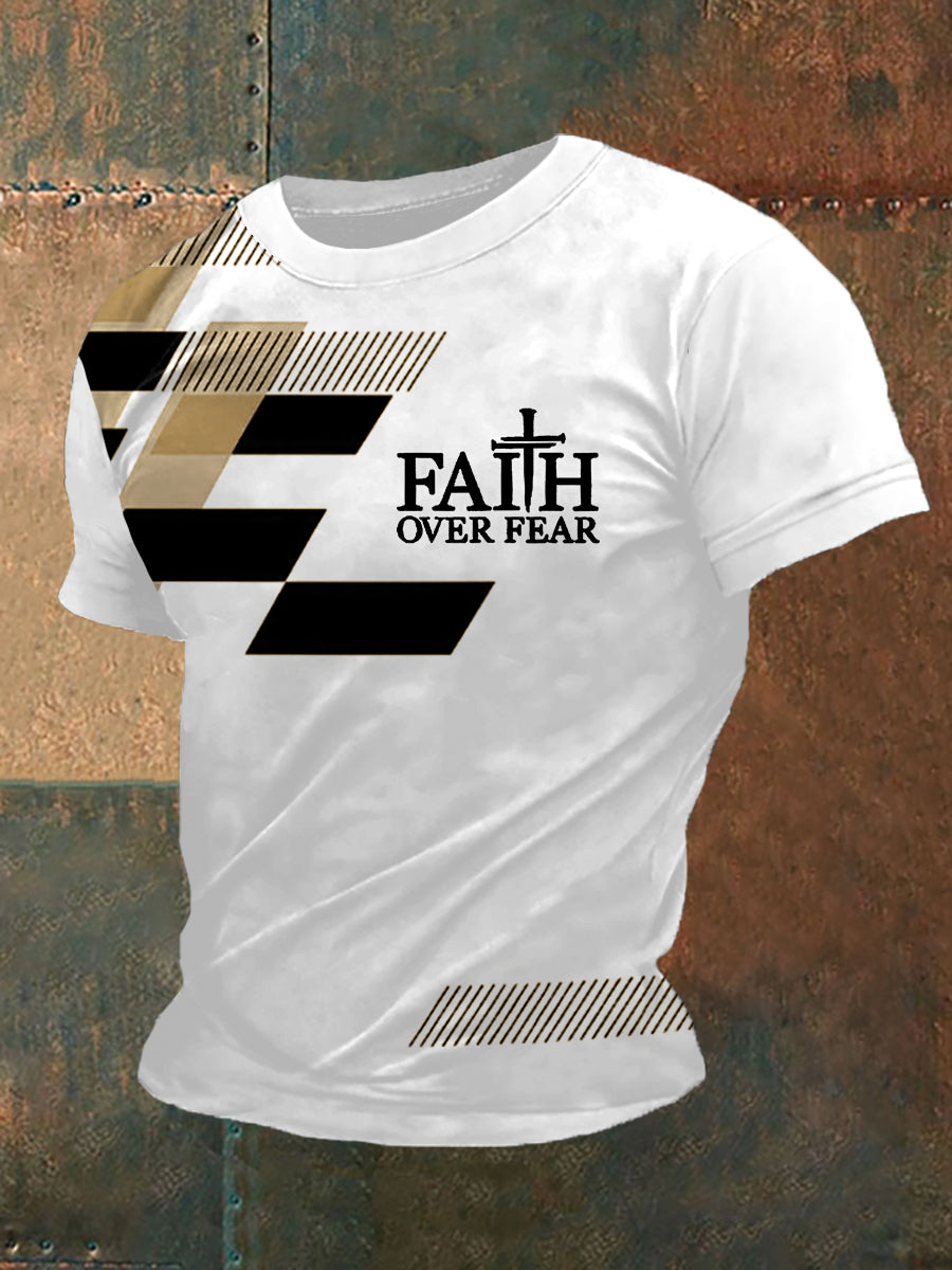 T-shirt décontracté à imprimé géométrique « La foi avant la peur » pour homme