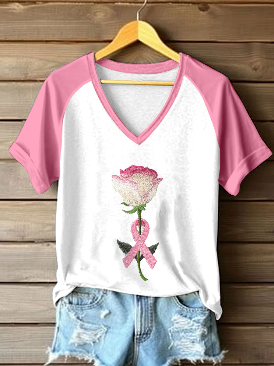 Women's Breast Cancer Awareness Pink Ribbon Embroidered T-Shirt