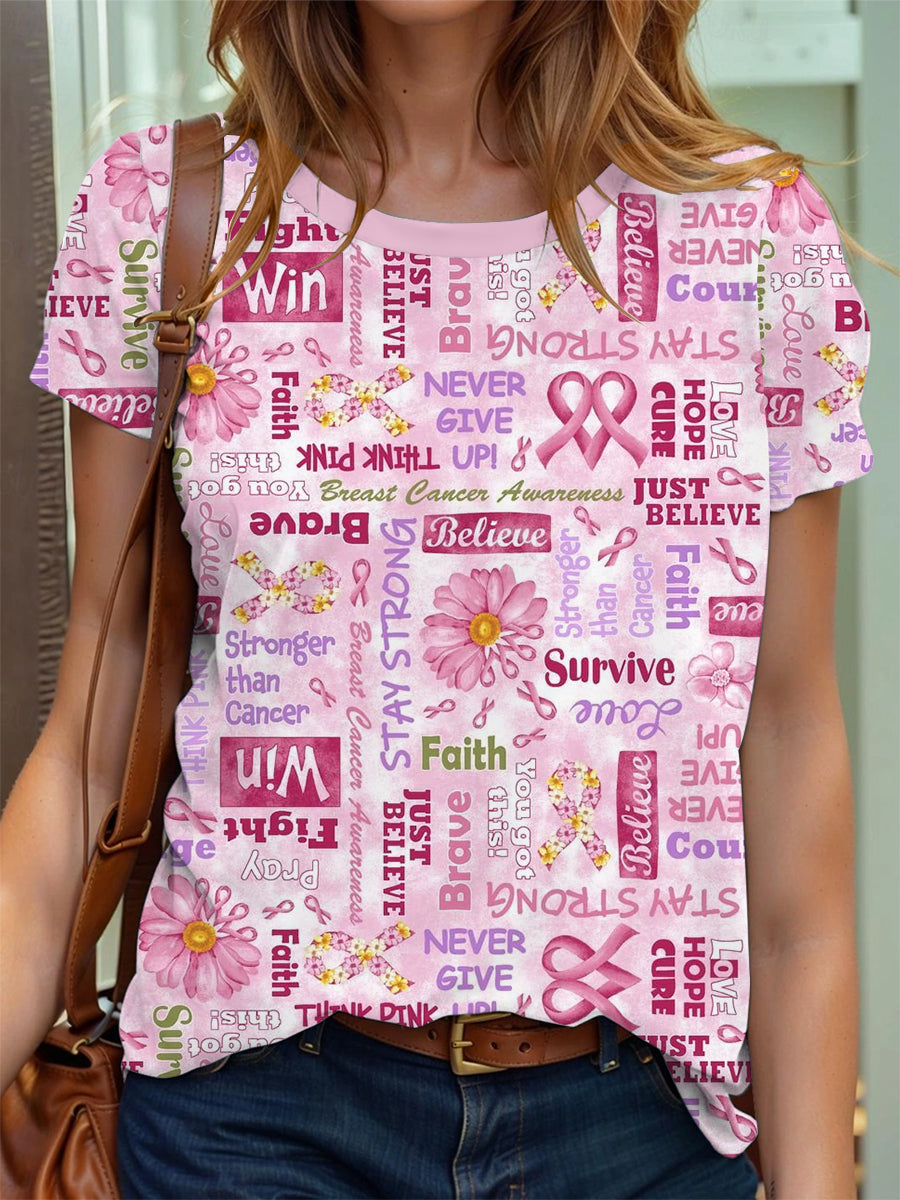 Women's Breast Cancer Awareness Print Short Sleeve T-Shirt