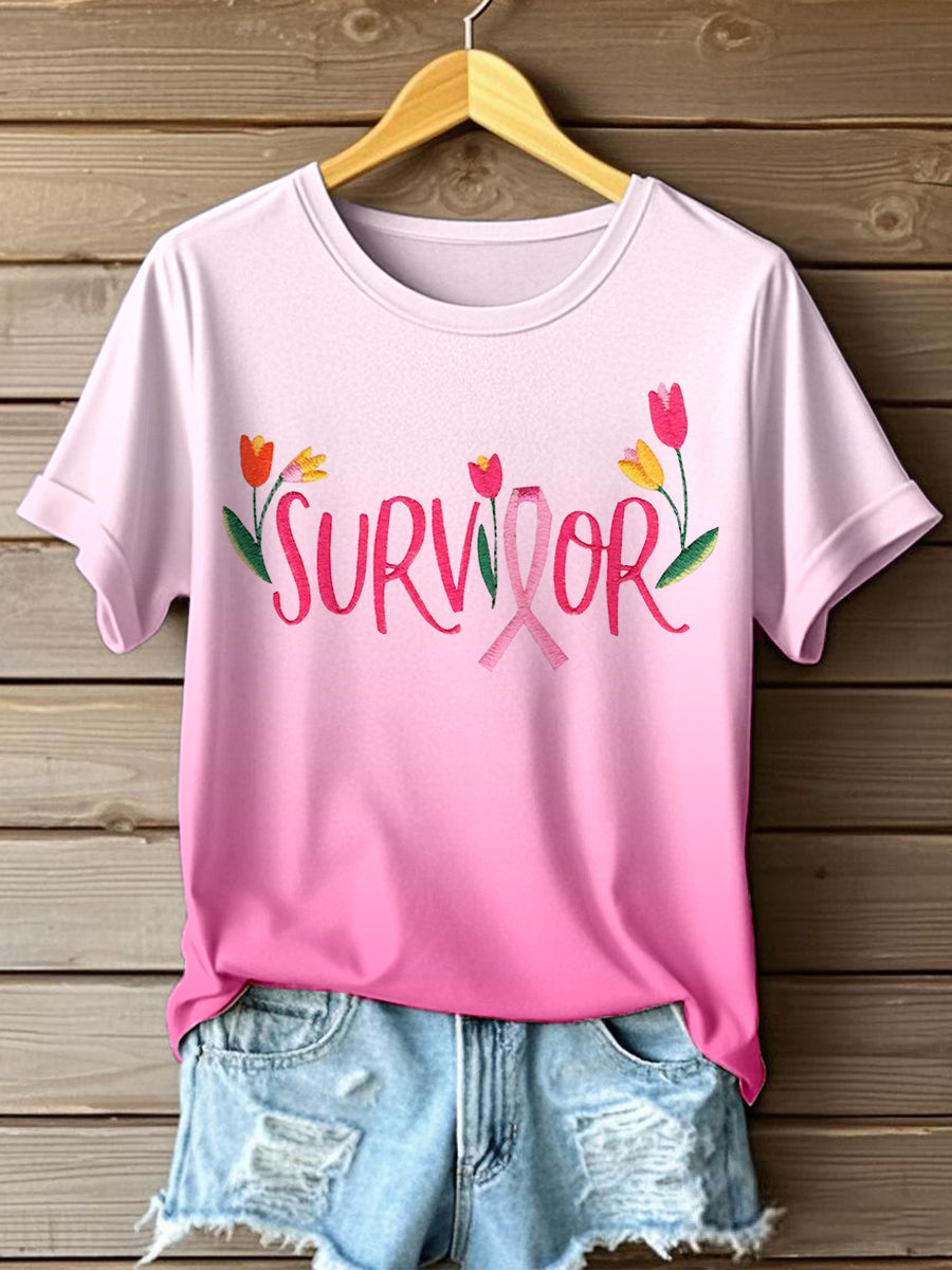 Women's Breast Cancer Awareness Survivor Embroidered T-Shirt