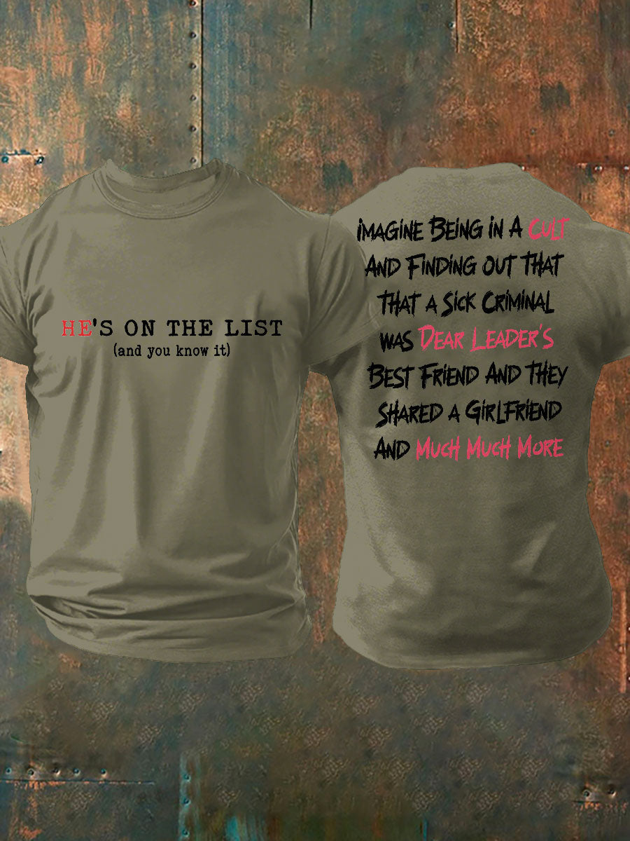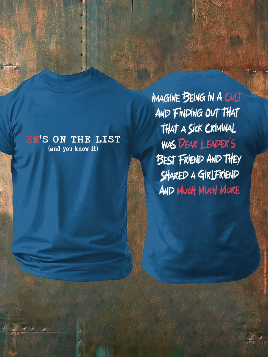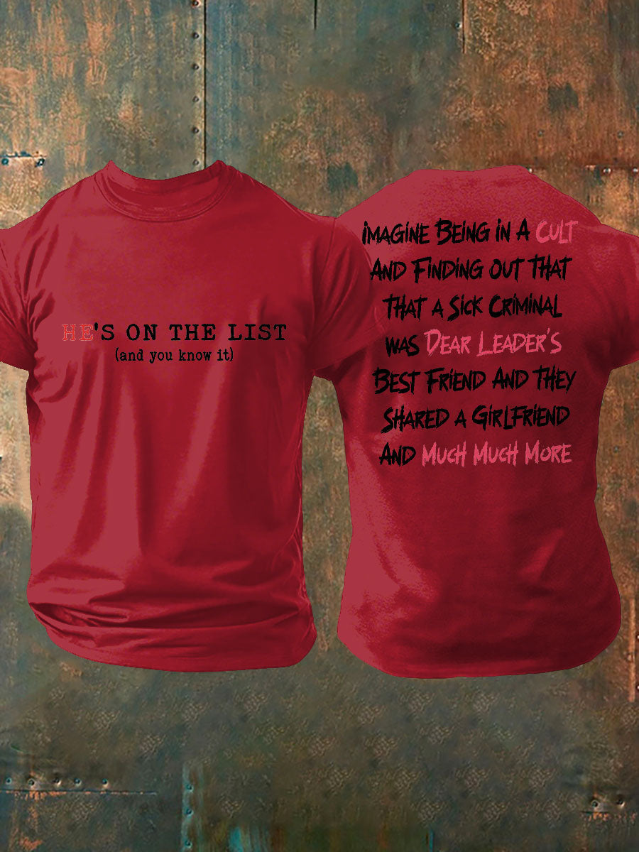 Men's 8647 FDT He's On The List Epstein Printed T-Shirt