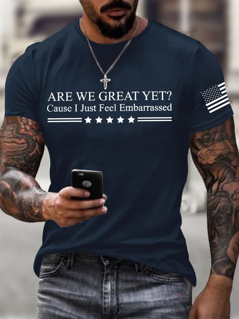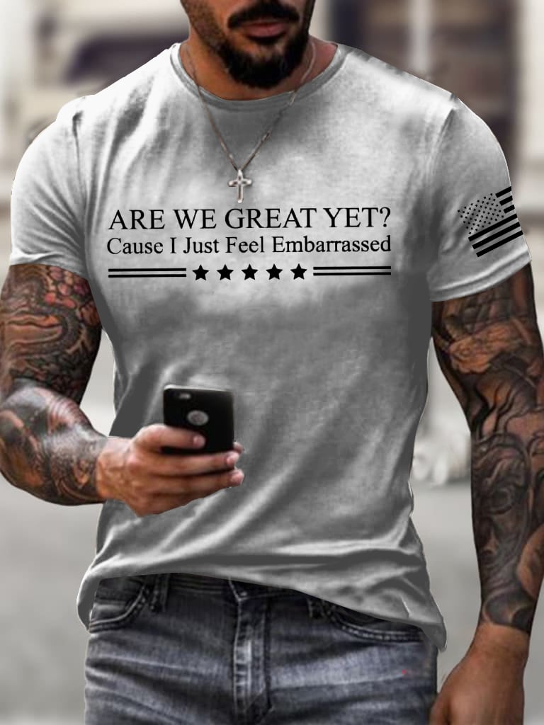Men's Are We Great Yet Cause I Just Feel Embarrassed Print T-Shirt