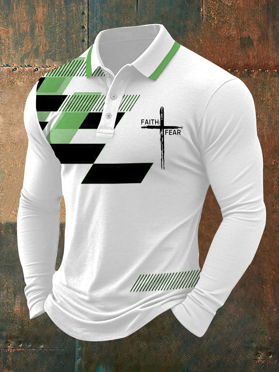 Men's Faith Over Fear Cross Faith Geometric Print Casual Long-Sleeve