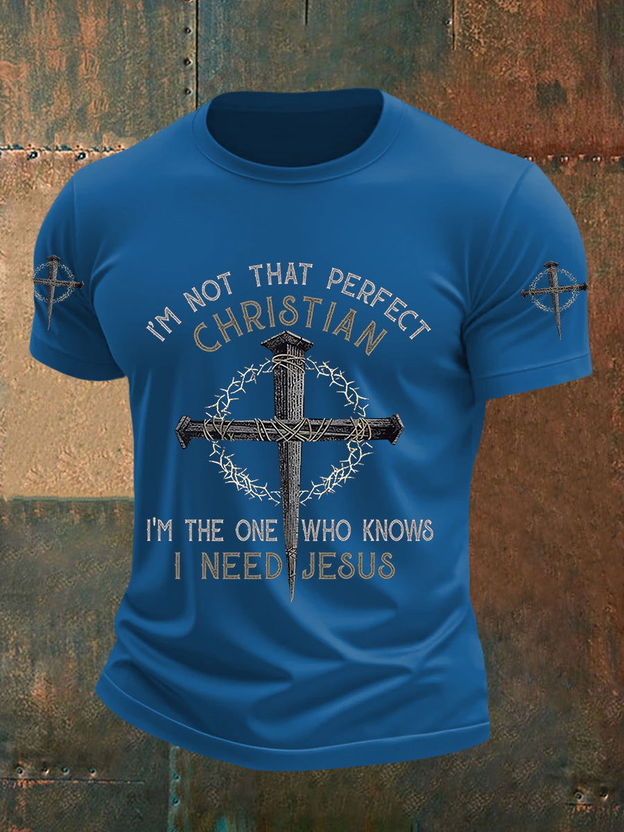 Men's I'm Not That Perfect Christian I'm The One Who Knows I Need Jesus Short Sleeves T-shirt