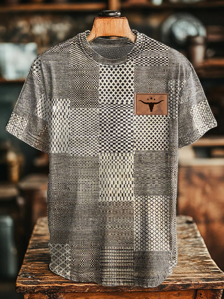 Men's Retro Western Art Bull Skull Print T-Shirt