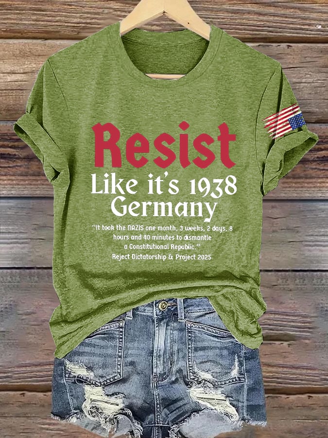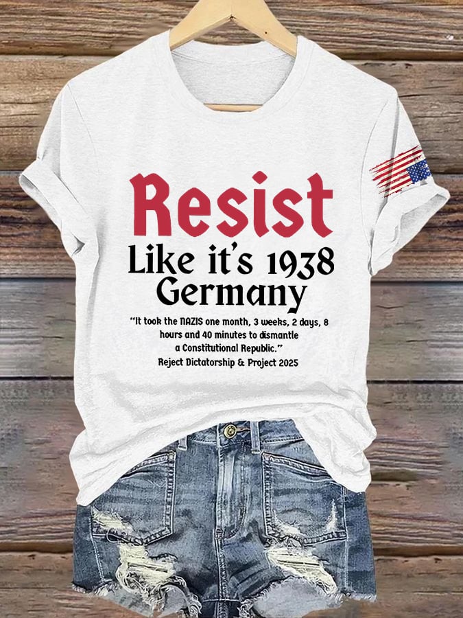 Women's Retro Resist Like It's 1938 Germany It Took The Nazis One Month,3weeks,2days,8 Hours And 40 Minutes To Dismantle A Constitutional Republic Print T-Shirt