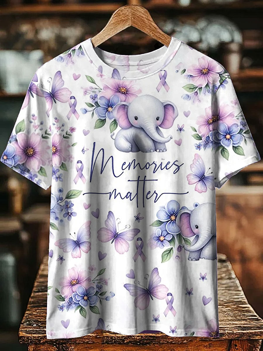 Unisex Alzheimer's Awareness Floral Printed Short Sleeve T-Shirt