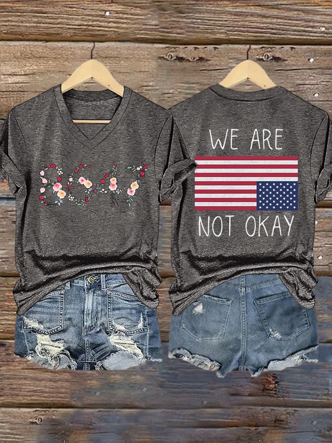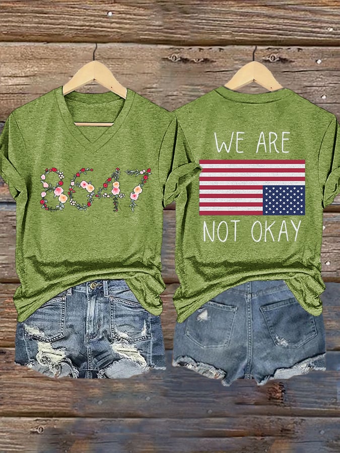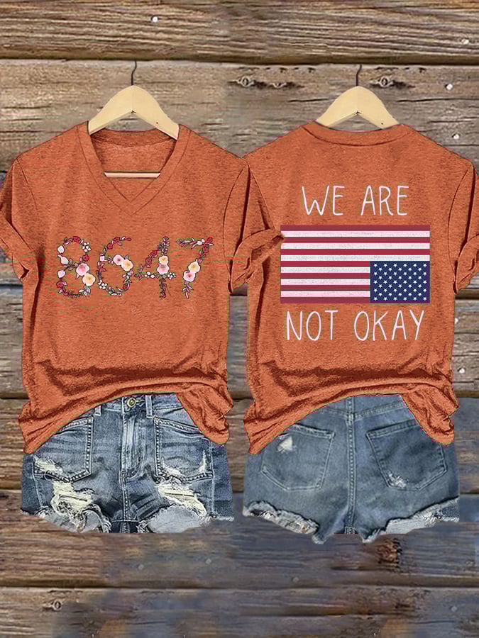 Women's V-neck Retro 86 47 We Are Not Ok Print T-Shirt