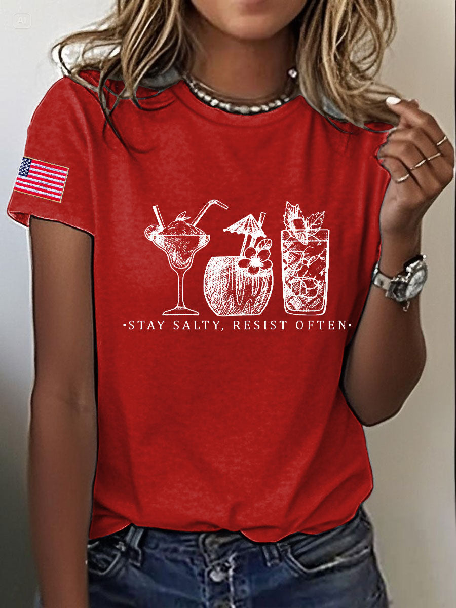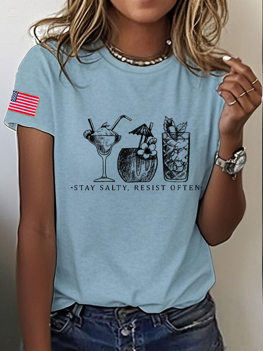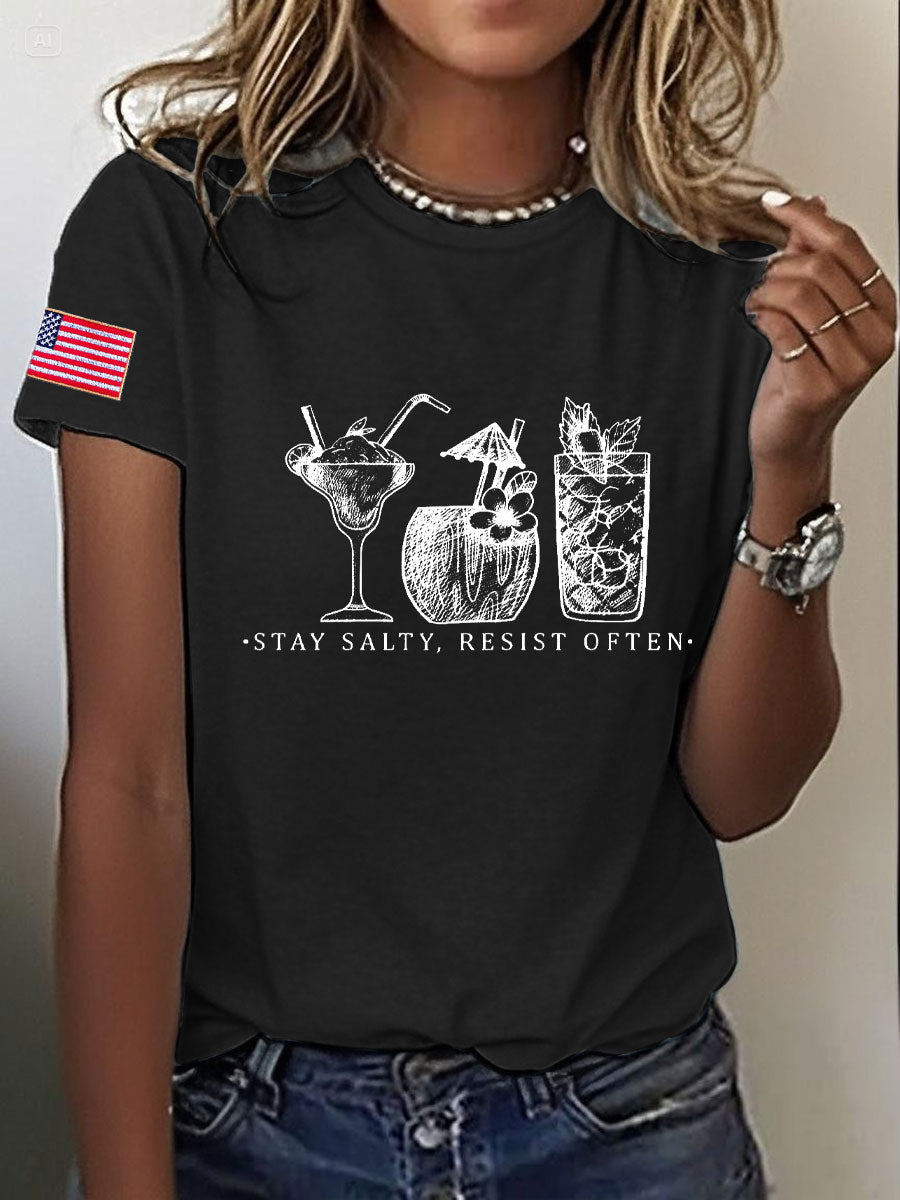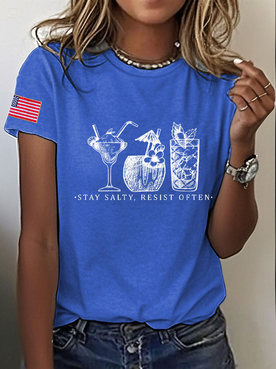 Women's 8647 FDT Stay Salty And Resist Printed T-shirt