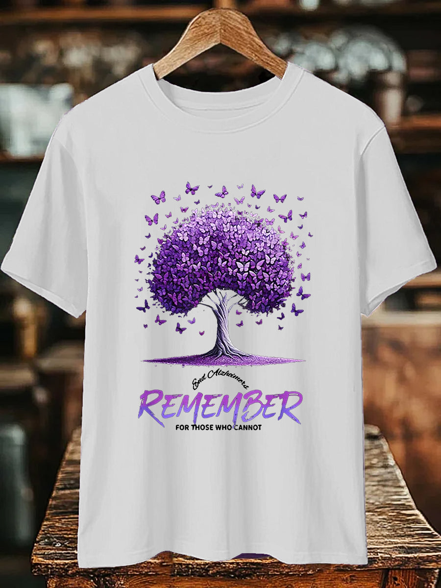 Women's Alzheimer's Awareness End Alzheimer Remember For Those Who Cannt Butterfly Printed Short Sleeve T-Shirt