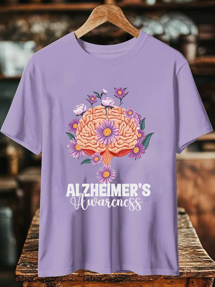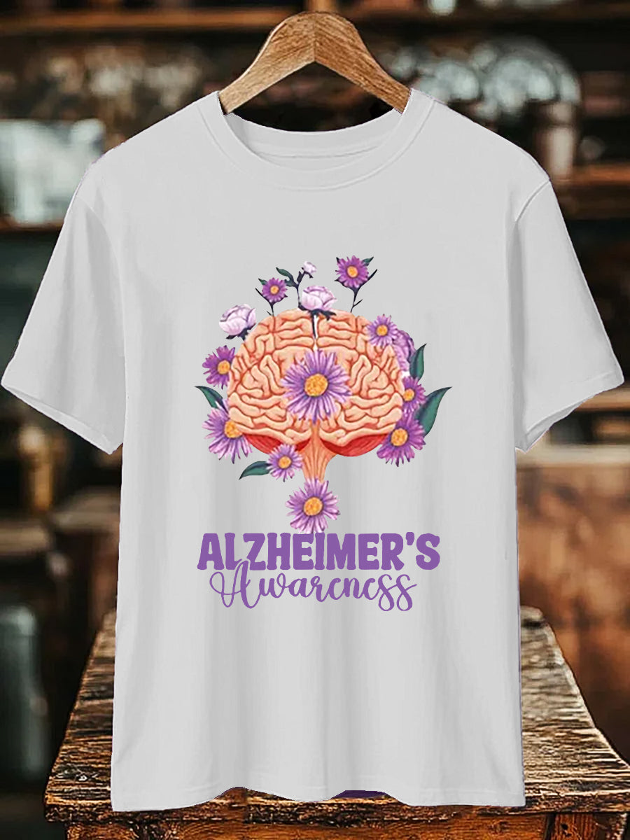 Women's Alzheimer's Awareness Floral Printed Short Sleeve T-Shirt