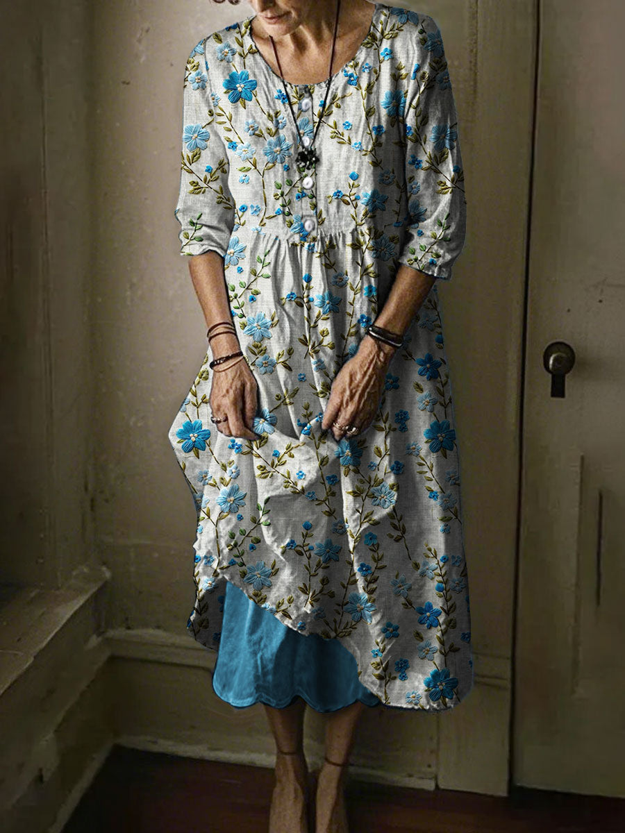 Women's Alzheimer's Awareness Forget Me Not Blue Floral Printed Dress
