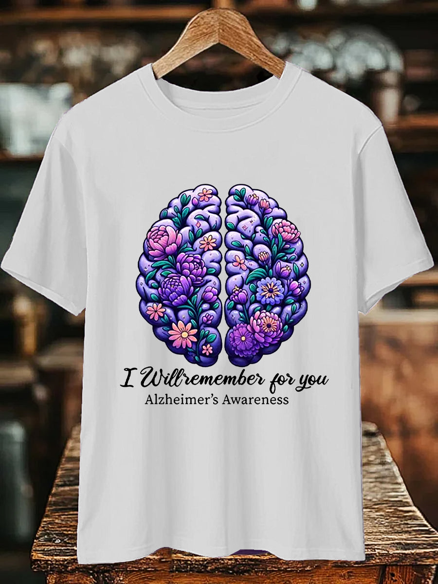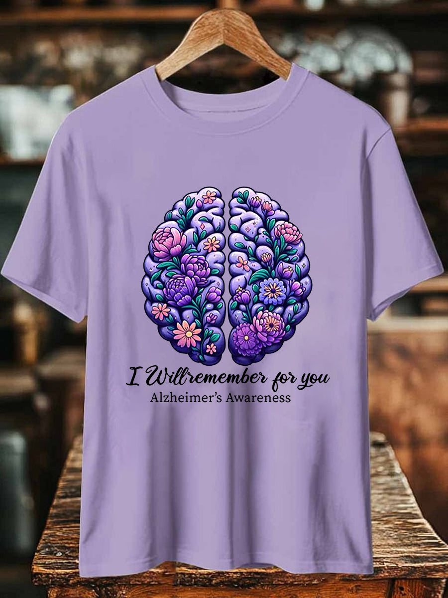 Women's Alzheimer's Awareness I Will Remember For You Floral Printed Short Sleeve T-Shirt