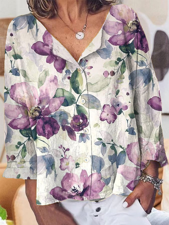 Women's Alzheimer's Awareness Purple Floral Printe Casual Shirt