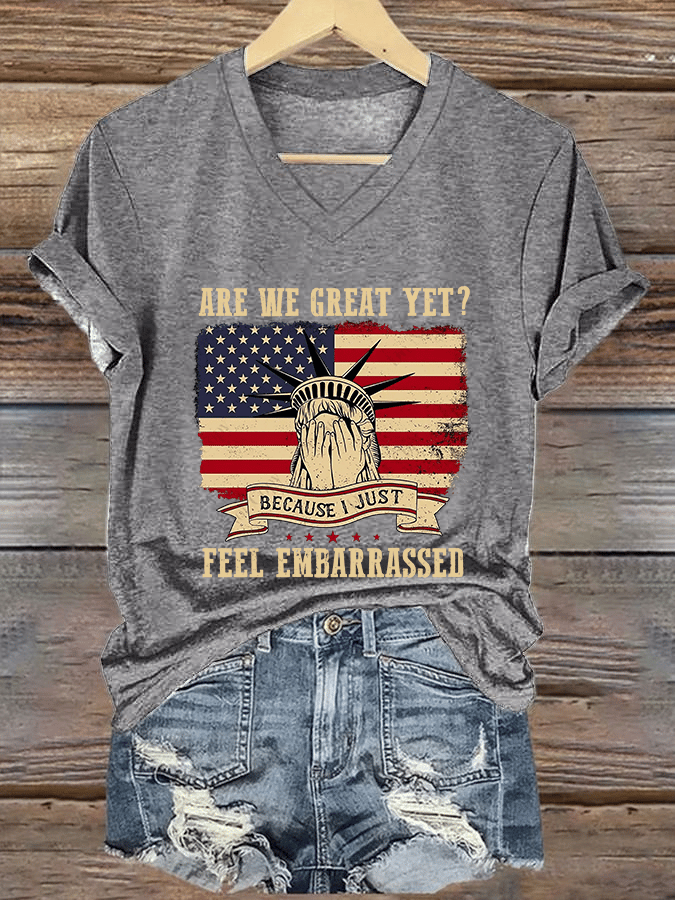Women's Are We Great Yet? Print V-Neck T-Shirt
