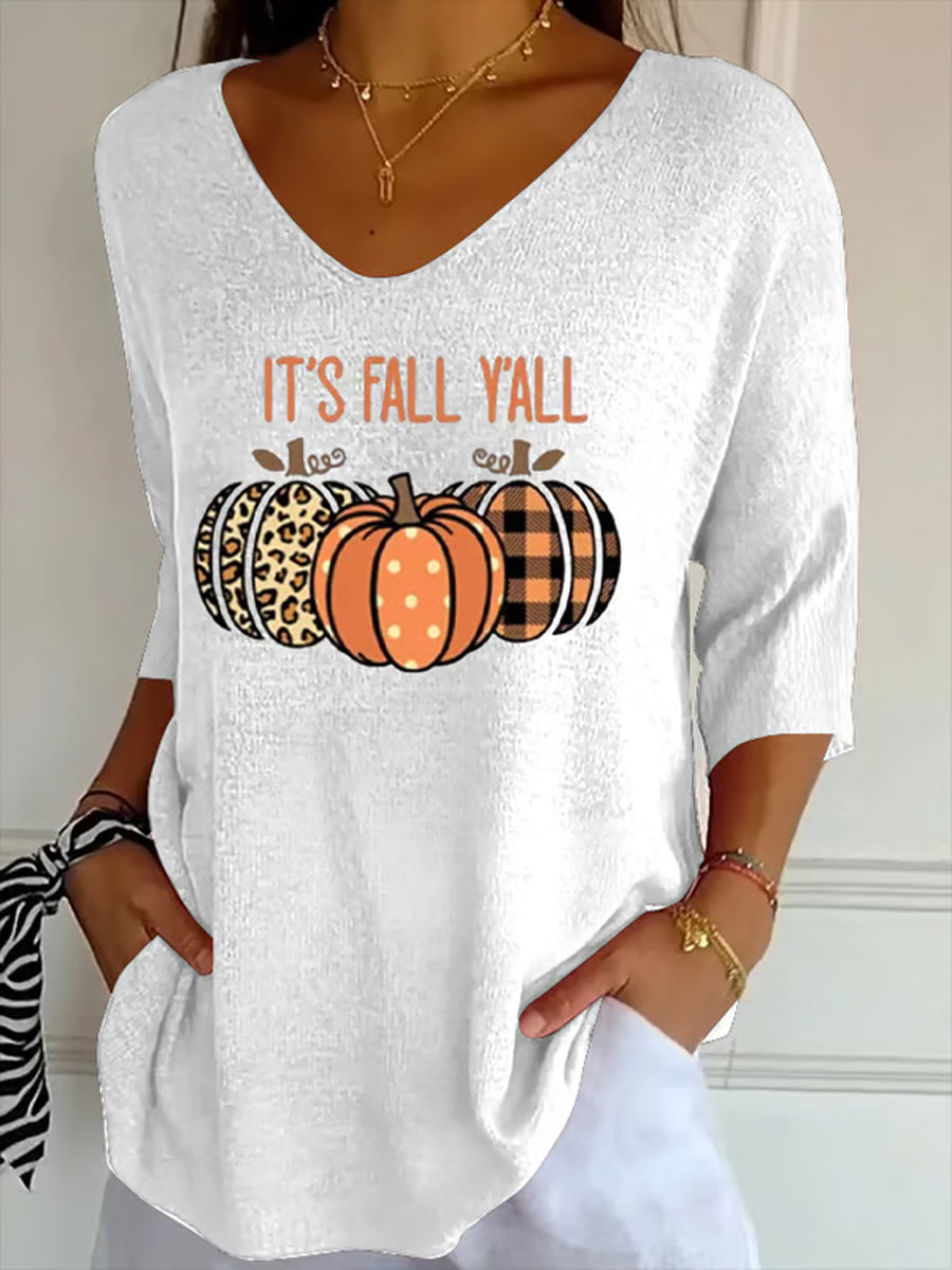 Women's Autumn It's Fall Y'ALL Printed V-Neck Casual Top