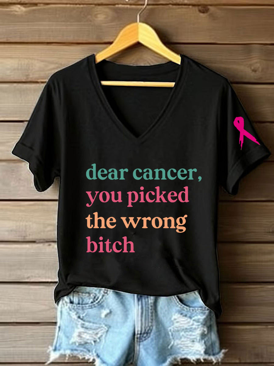 Women's Breast Cancer Awareness Dear Cancer You Picked The Wrong Bitch Short Sleeve T-Shirt