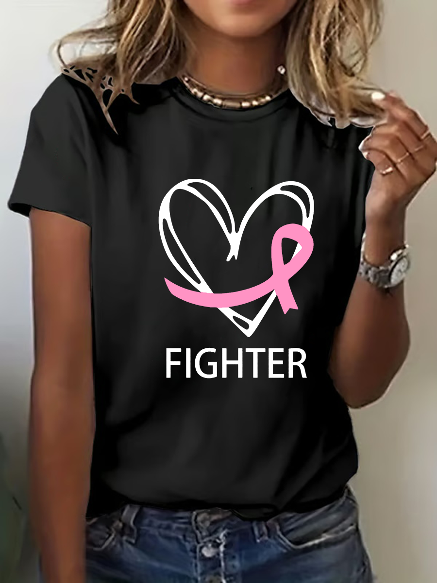 Women's Breast Cancer Awareness Pink Ribbon Print Casual T-Shirt