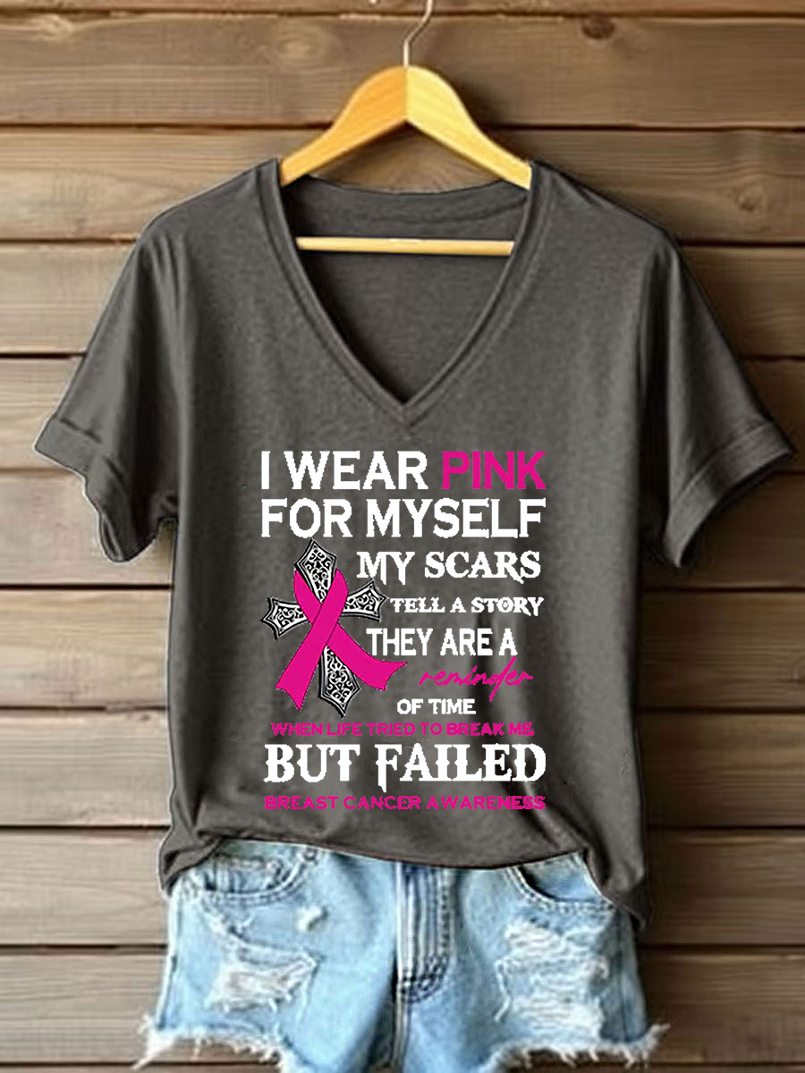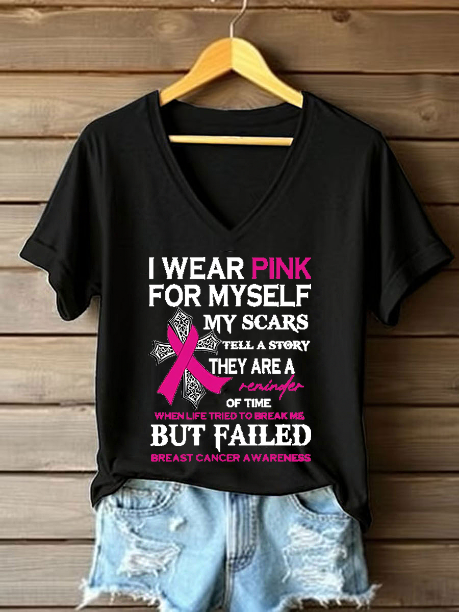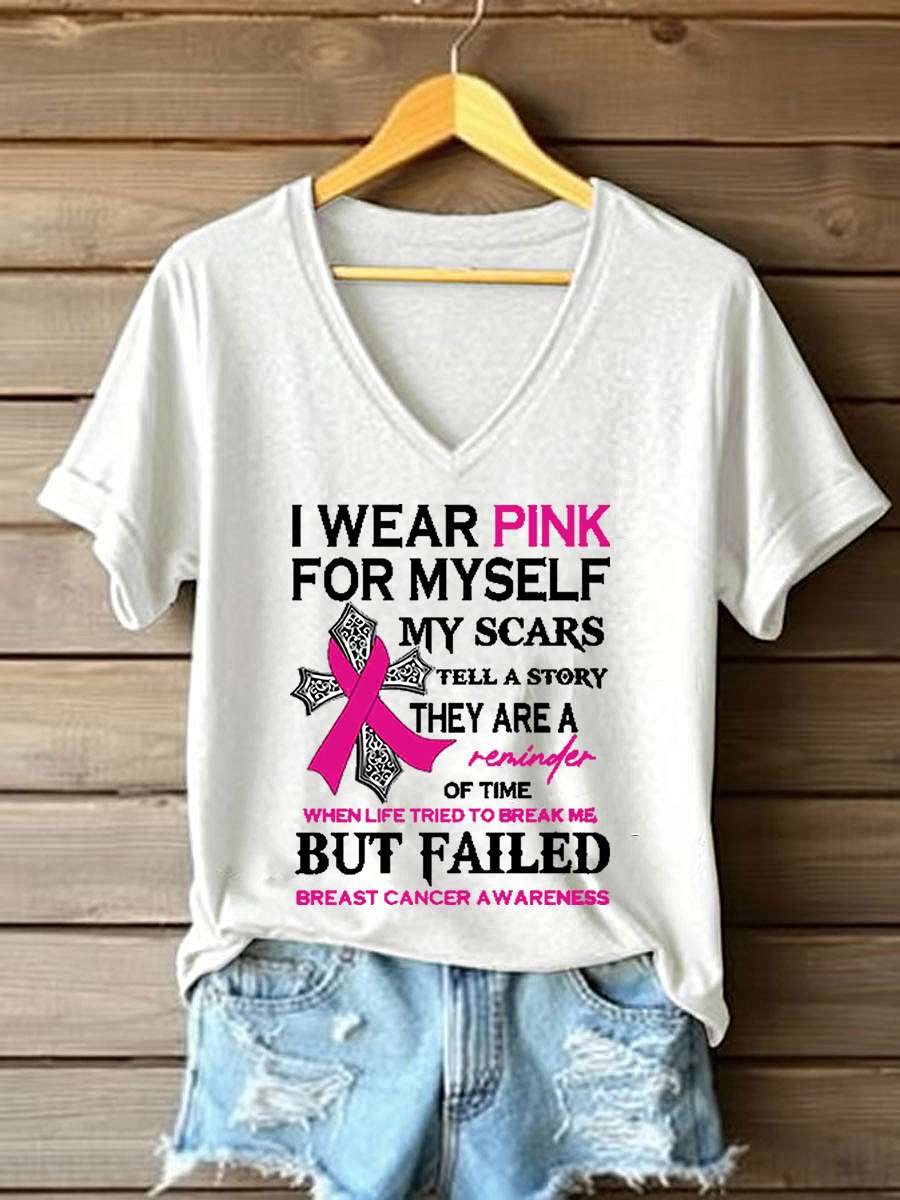 Women's Breast Cancer Awareness Pink Ribbon Print Casual T-Shirt