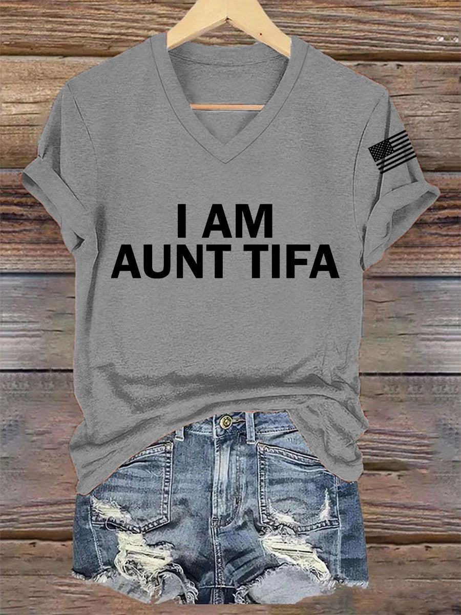 Women's  I Am Aunt Tifa Aunties Against Fascists V-Neck Tee