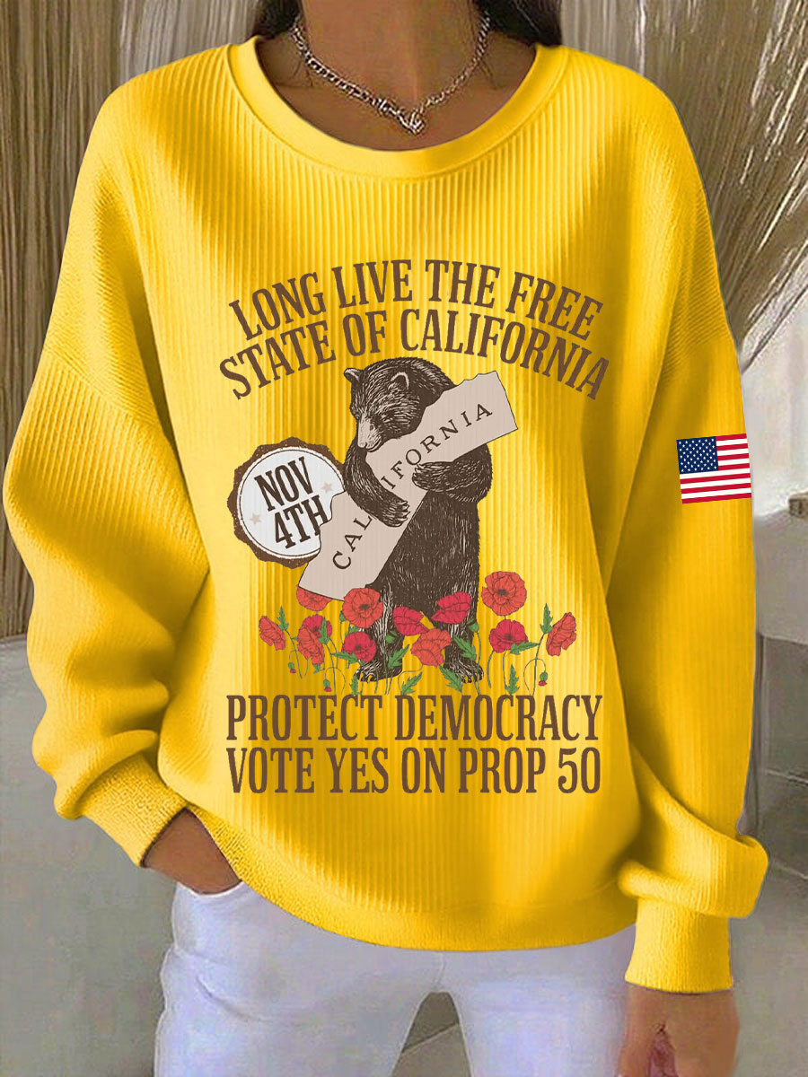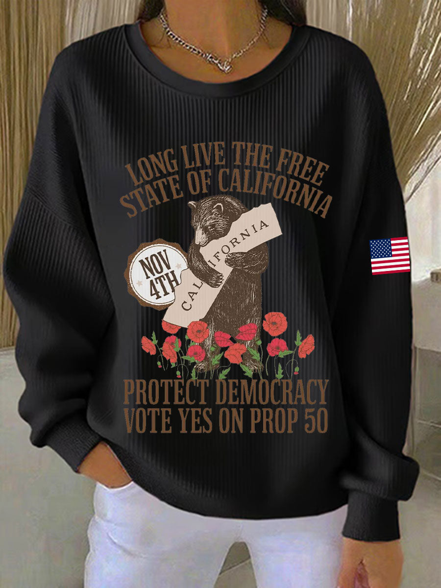 Women's Long live the free state of California, protect democracy, vote yes on Prop 50 California bear sweatshirts