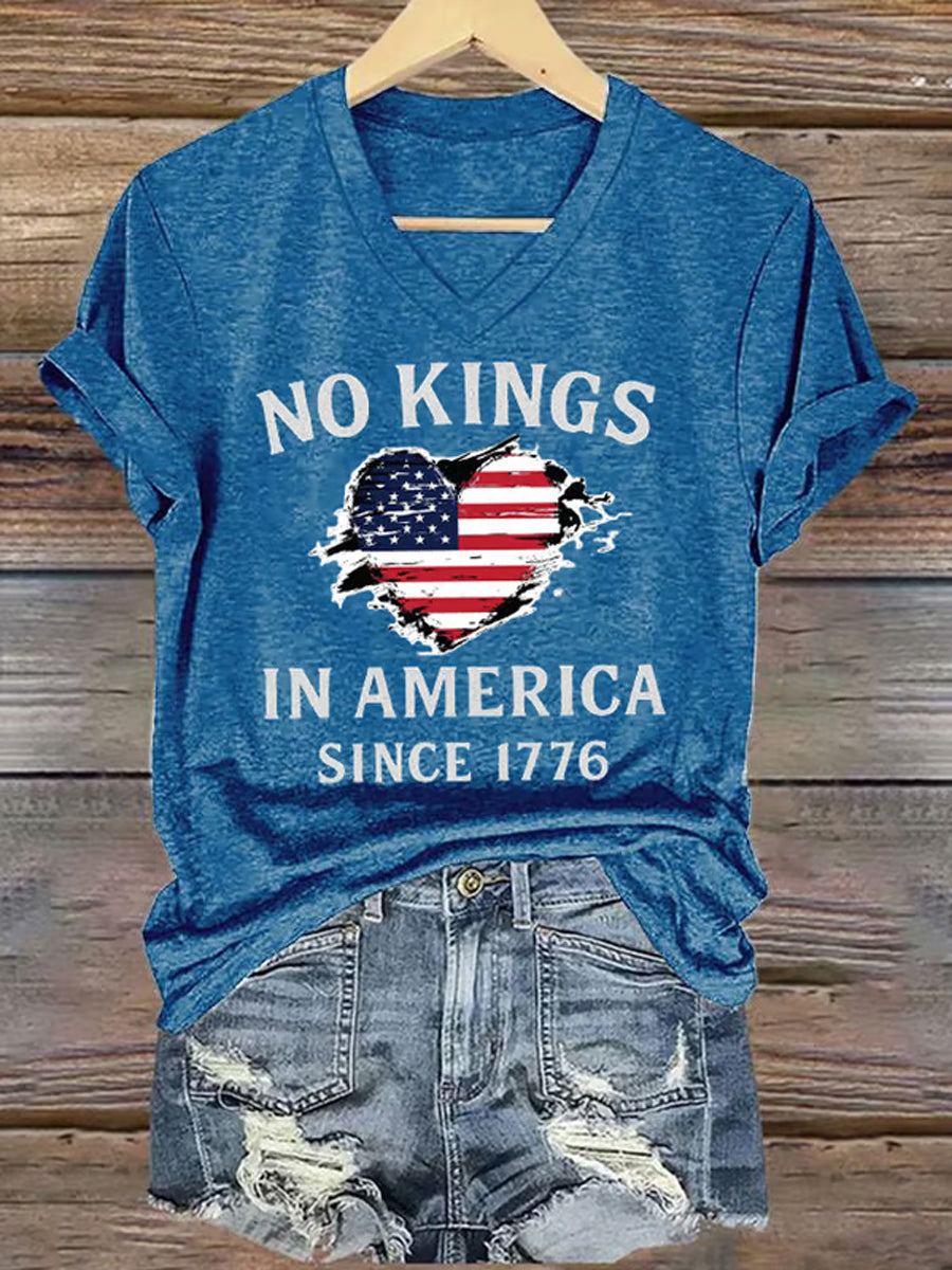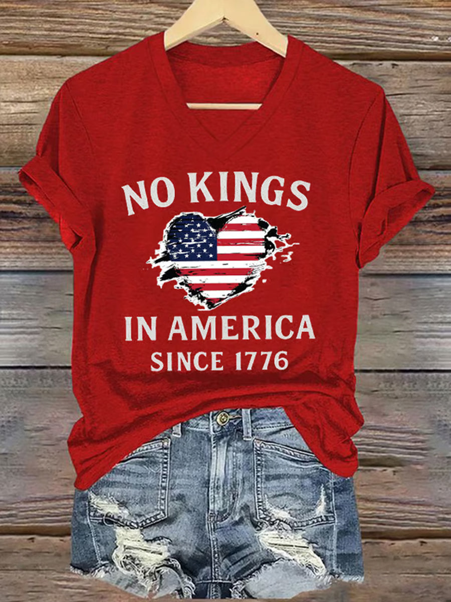 Women's No Kings In America Since 1776 V-Neck Tee