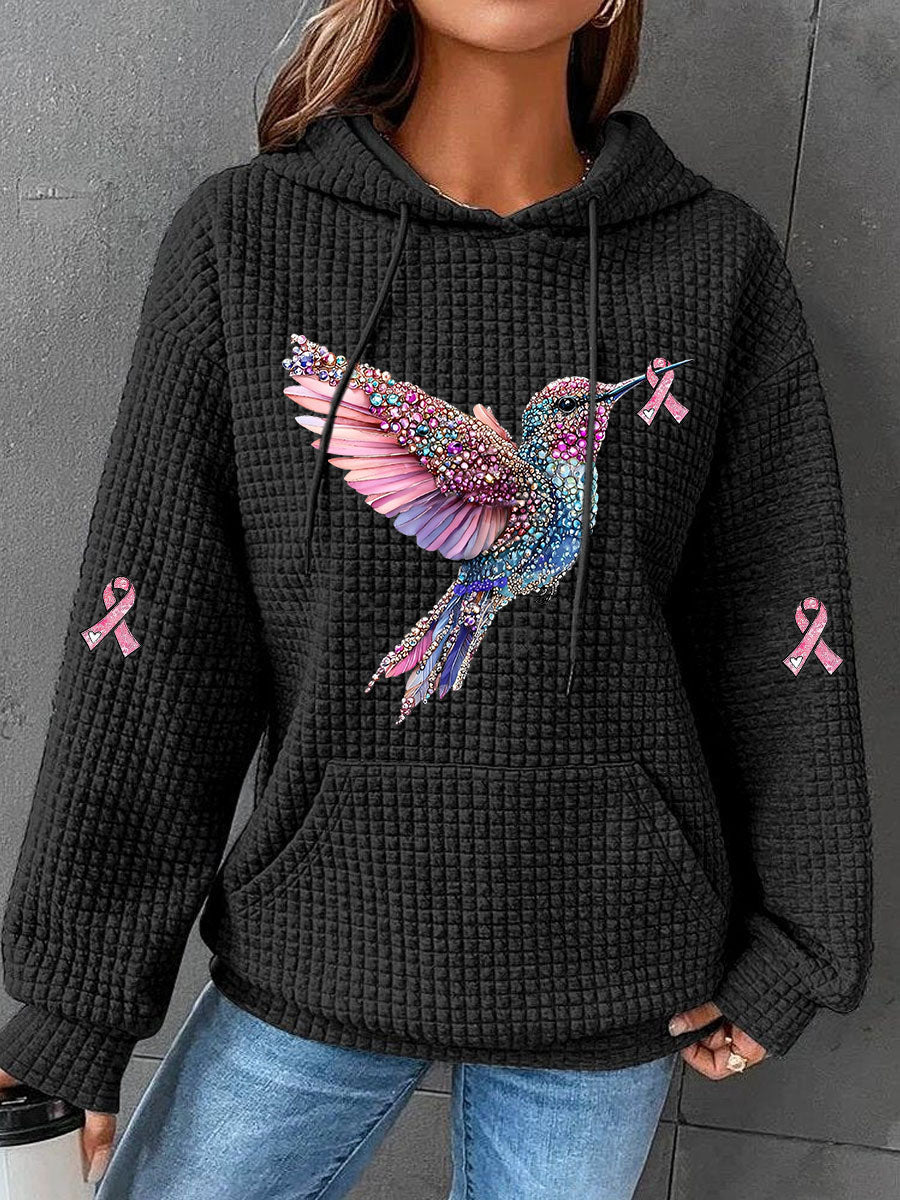 Women's Pink Ribbon Waffle Print Casual Hoodie