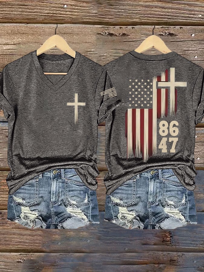 Women's Retro 8647 Printed Short Sleeve T-Shirt