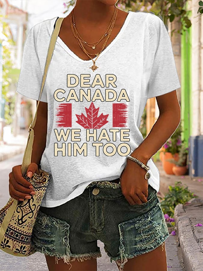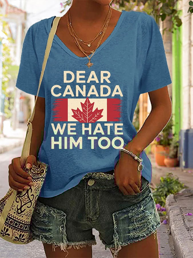 Women's Retro Dear Canada We Hate Him Too Print T-Shirt