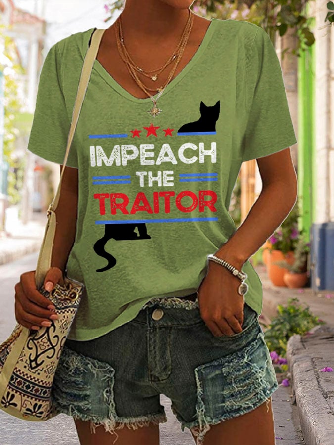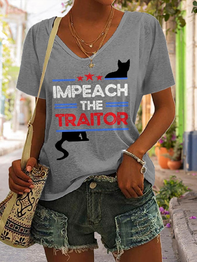 Women's Retro Impeach The Traitor Print T-Shirt