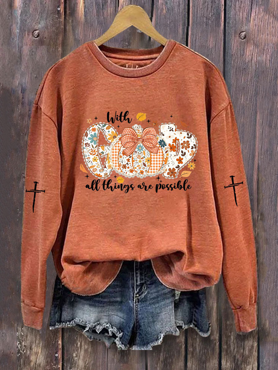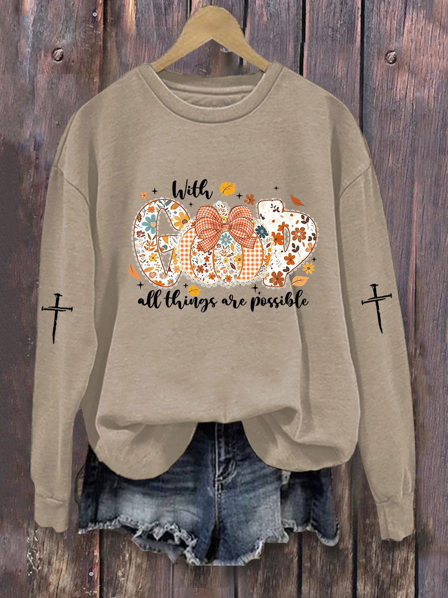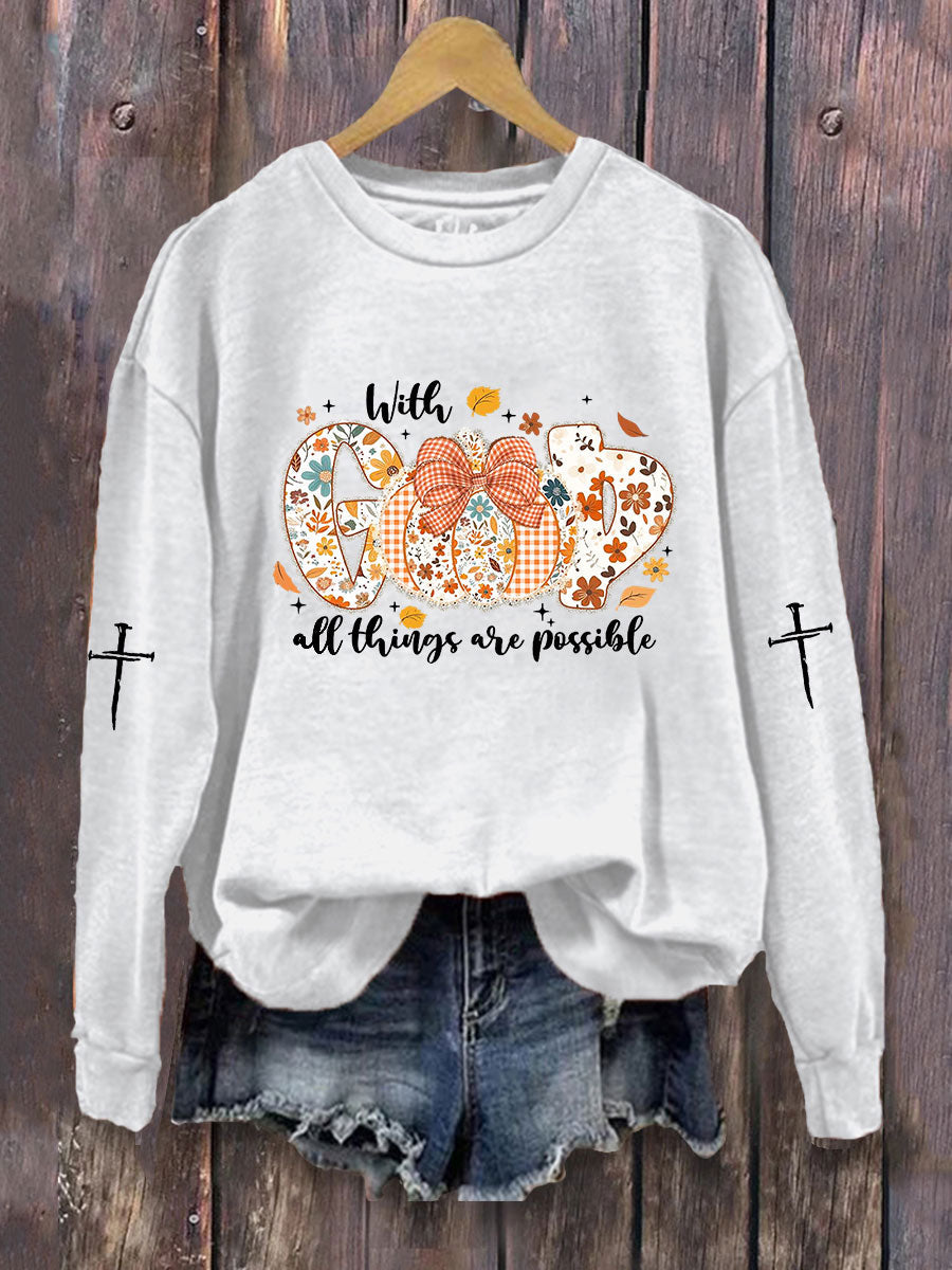 Women's With GOD All Things Are Possible Printed Casual Sweatshirt
